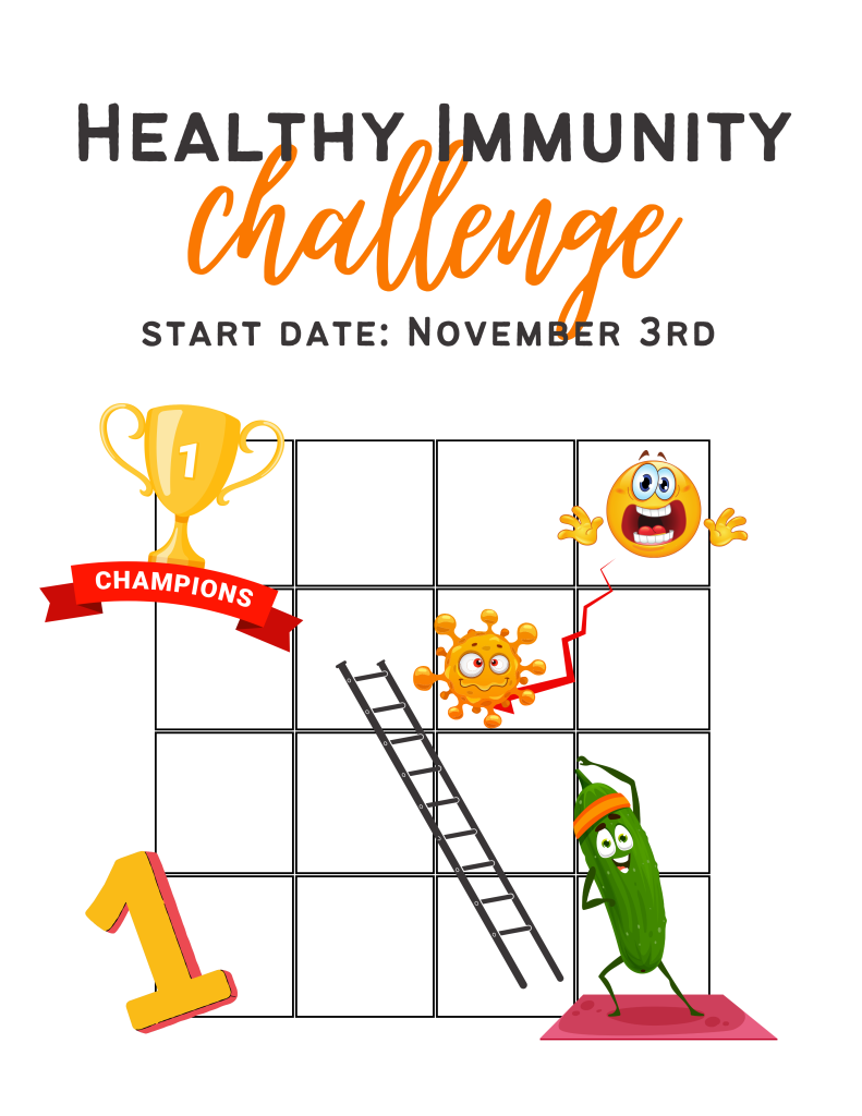 Join our Healthy Immunity Challenge, inspired by the classic game of Snakes and Ladders. Each day you come in, roll the big dice and move your game piece: